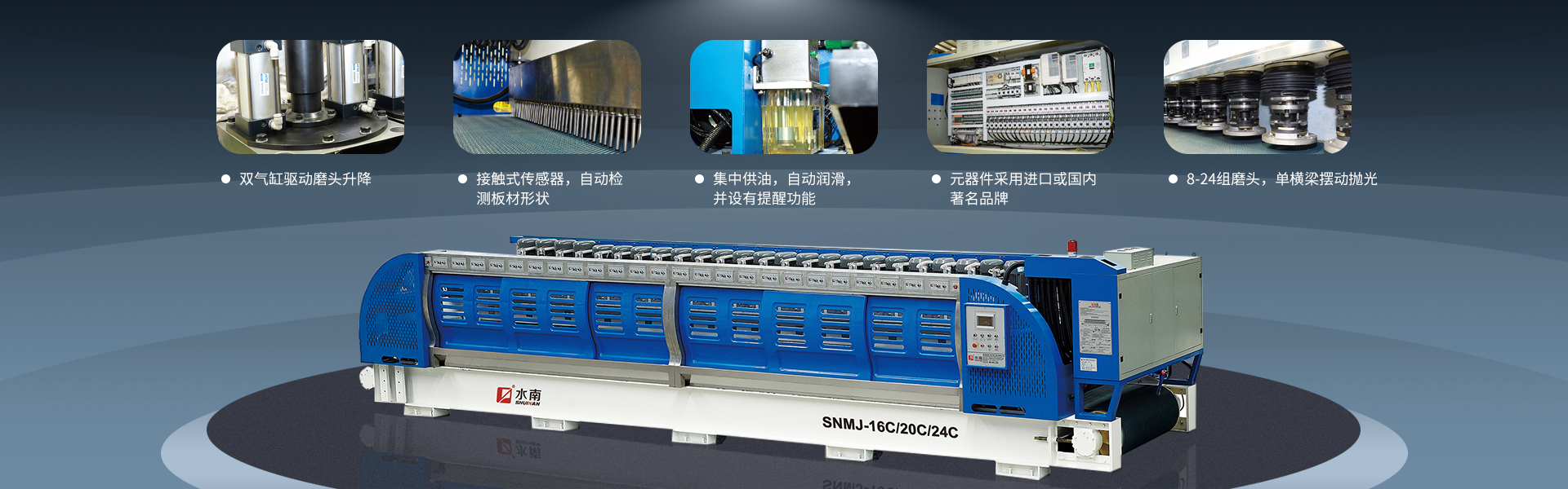 匯集多項設(shè)備和技術(shù) 建立標(biāo)準(zhǔn)化倉儲和裝配流程 以人為本,誠信務(wù)實 銳意進取,勇于創(chuàng)新 持續(xù)提升行業(yè)核心競爭力 打造知名的石材機械品牌